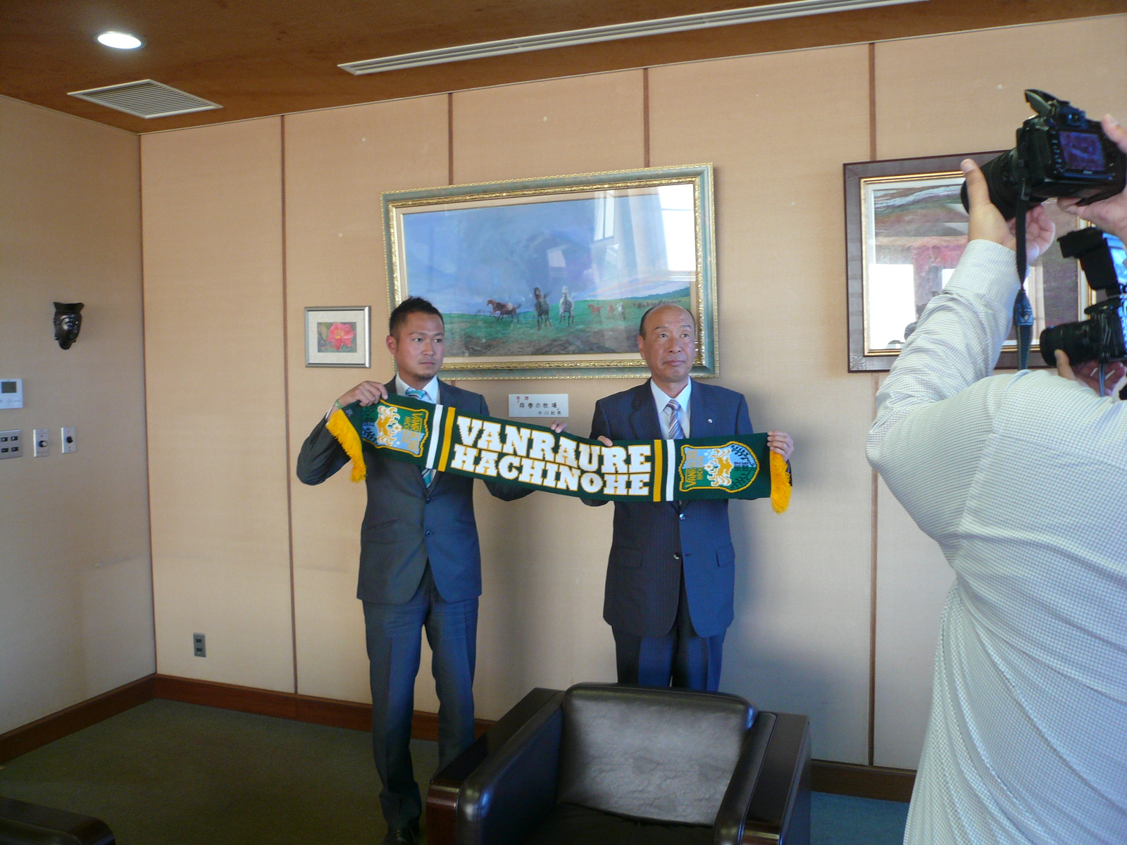 JFL2014シーズン五戸開催のお礼と、今後の引き続きの支援のお願いにあがりました。
