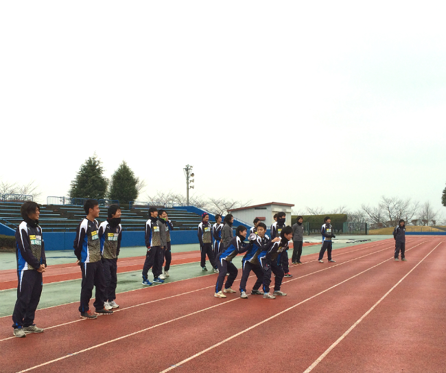 準備運動は中村選手と菅井兄弟が担当しました。