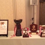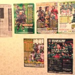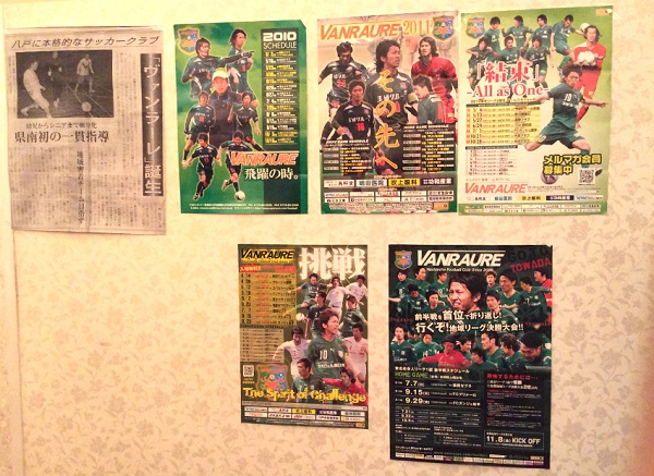 ヴァンラーレ設立当時のデーリー東北掲載記事、トロフィーを展示。
