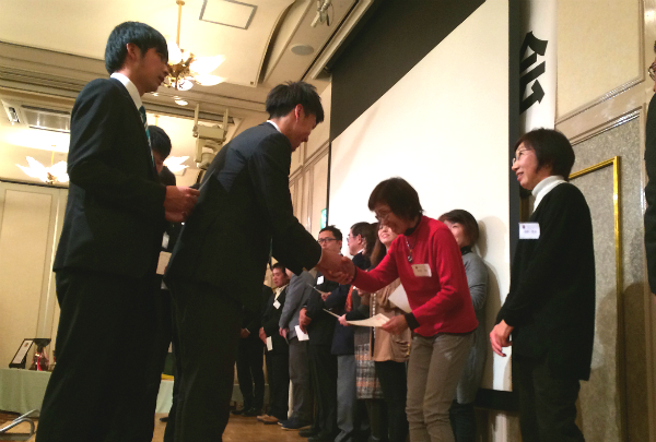 選手より感謝状を贈呈、山田選手より感謝の言葉をおくりました。