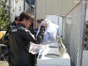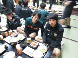 午前のトレーニング後の佐藤選手、中筋選手、野口選手