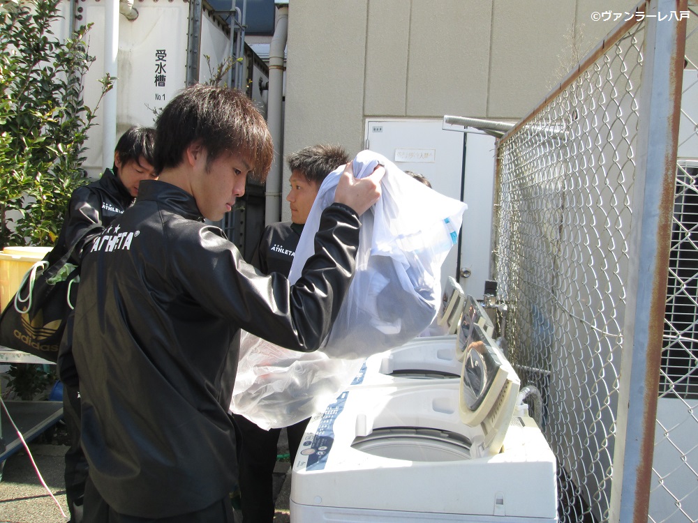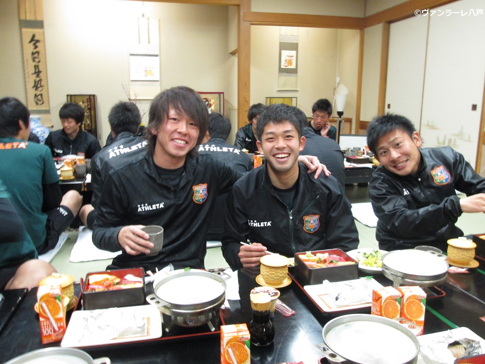 五戸町出身の新井山選手と沼田選手とスペースに割り込んできた松野選手