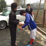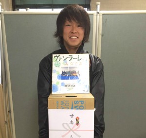 新井山祥智選手からホームゲーム招待券を贈呈。