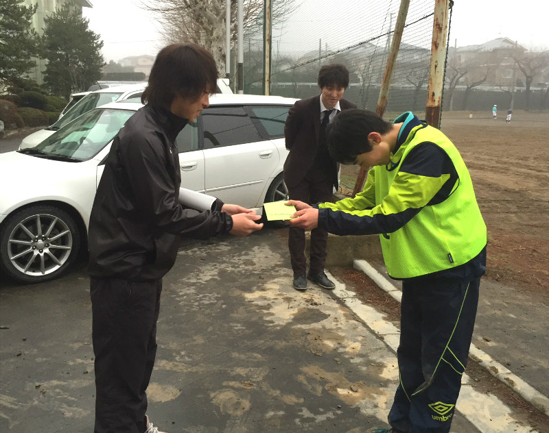 また、白銀中学校サッカー部より選手へのメッセージと御厚志を賜りました。