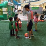 コツを教えたり、一緒にミニサッカーを楽しみました。