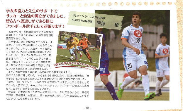 八戸学院野辺地西高等学校2015学校案内パンフレットに、阿部稜選手が掲載されております。