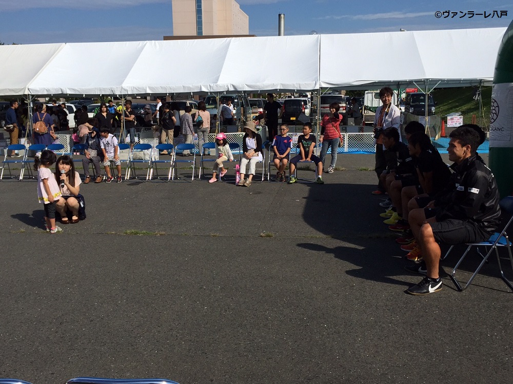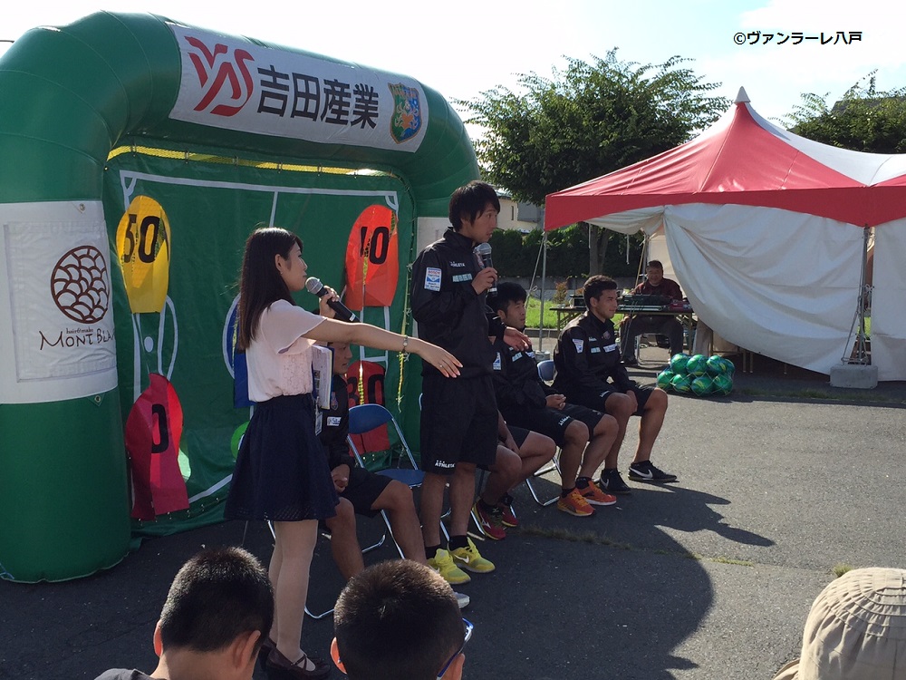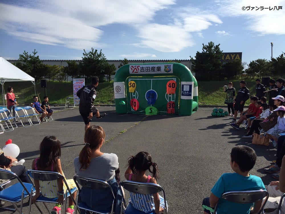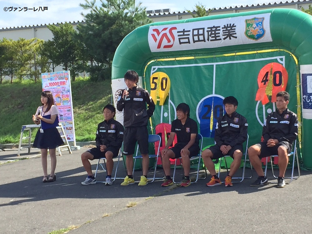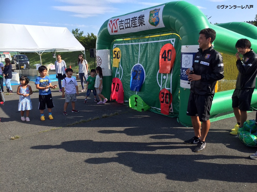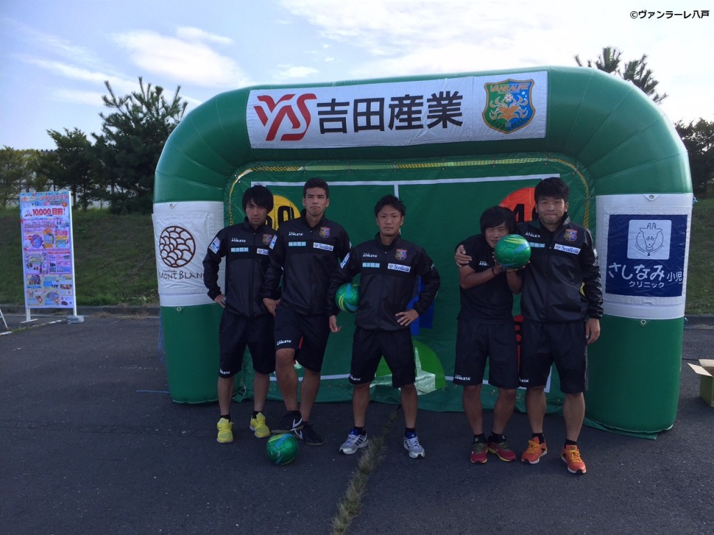 9月12日(土)にグランドサンピア駐車場特設会場で行われました【UR都市機構 八戸ニュータウンフェスタ】にて、ヴァンラーレ八戸選手トークショー&キッズ・キックターゲットに西村選手、熊谷選手、鳥山選手、松本選手、阿部選手が参加しました。