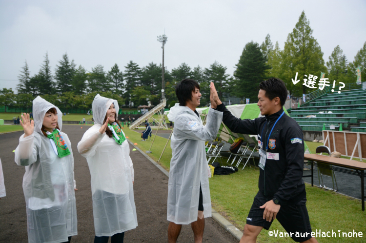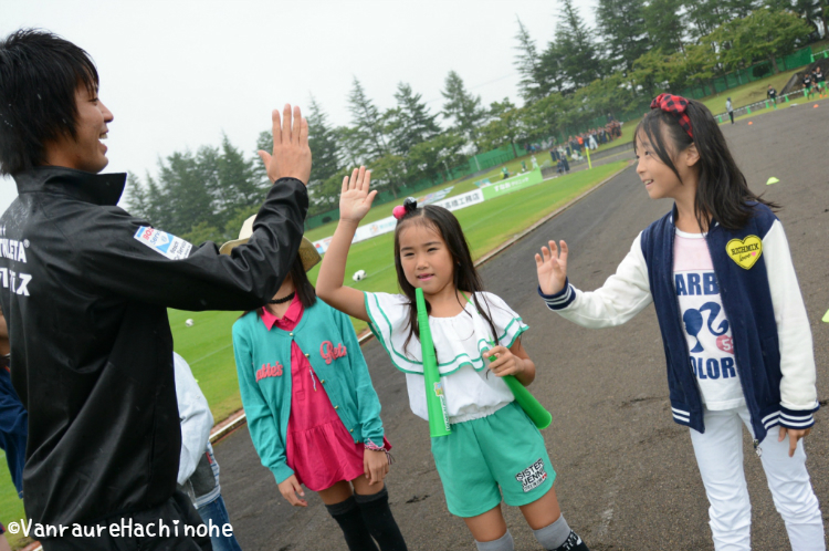 選手とハイタッチ たくさんのご参加、ありがとうございました。