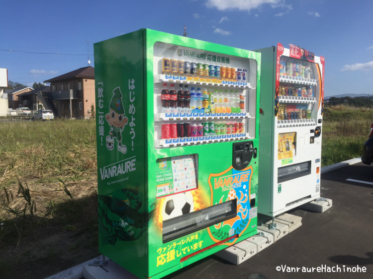 オフィシャルパートナーでもあります柏電業株式会社様の駐車場に フルラッピング(コカコーラ社)のサポートベンダー(応援自動販売機)を 設置いただいております。