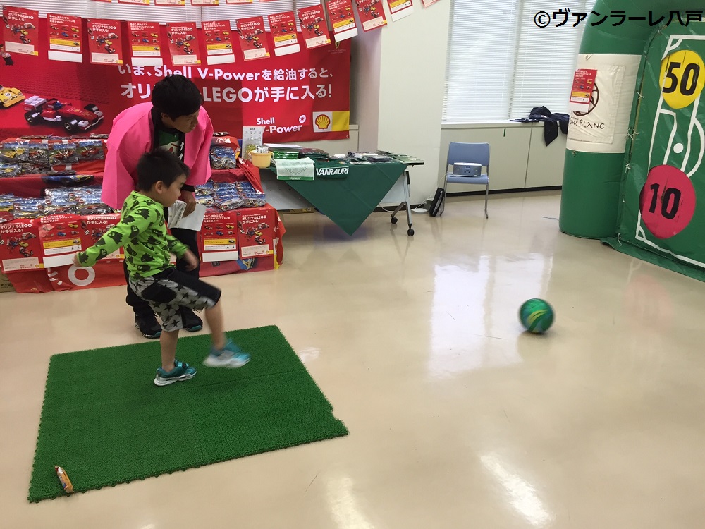 イベント当日は、10月25日の栃木ウーヴァFC戦の試合告知活動とキックターゲット実施、ヴァンラーレ八戸グッズ販売を行いました。
