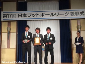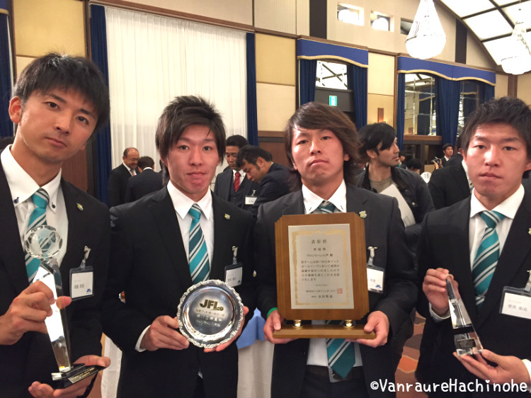 本日12月9日(水)、都内にて行われました「第17回日本フットボールリーグ(JFL)表彰式」に 望月一仁監督、新井山祥智選手、須藤貴郁選手、菅井拓也選手、菅井慎也選手が 出席してまいりました。