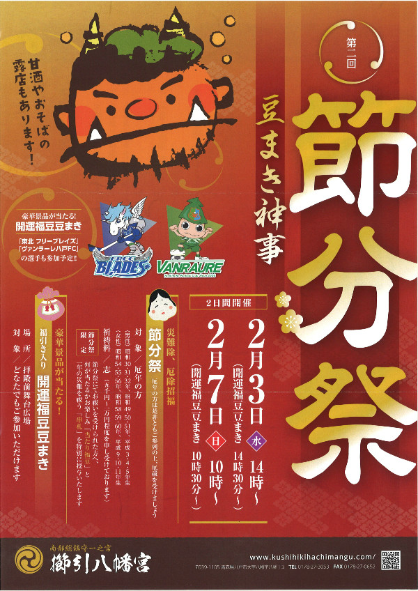 2月3日(水)櫛引八幡宮で行われます第2回豆撒き神事(節分祭)に