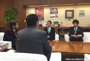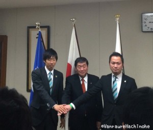 1月19日(火)八戸市庁にて市川大祐選手、ヴァンラーレ八戸代表取締役 細越健太郎が