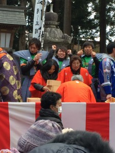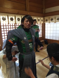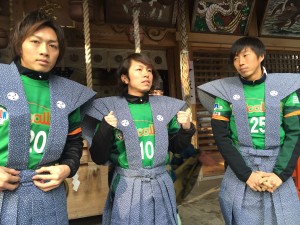 本日、櫛引八幡宮にて行われた平成28年第2回豆撒き神事(節分祭)にNO10新井山祥智選手、NO20山崎貴雅選手、NO25市川大祐選手がイベントに参加しました。