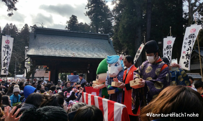 本日、櫛引八幡宮にて行われた平成28年第2回豆撒き神事(節分祭)に ヴァン太くんが参加しました。