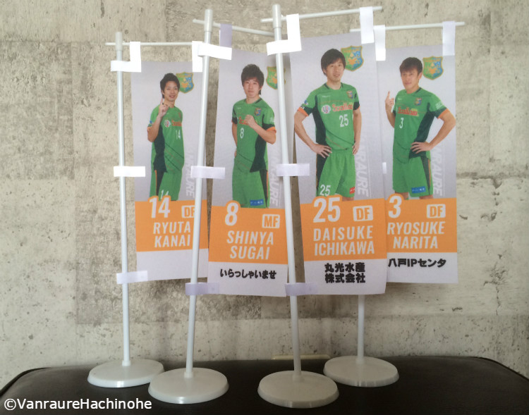 4月17日(日)ヴェルスパ大分戦より試合会場にて掲出している選手別のぼり旗。