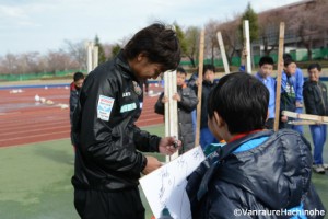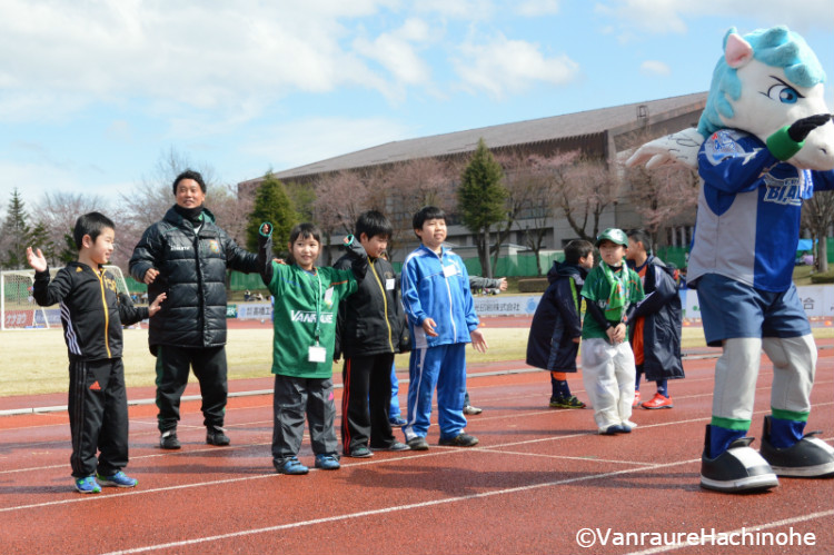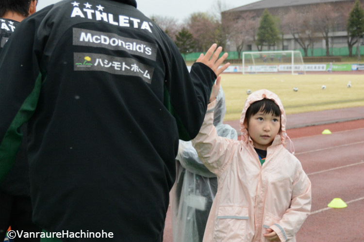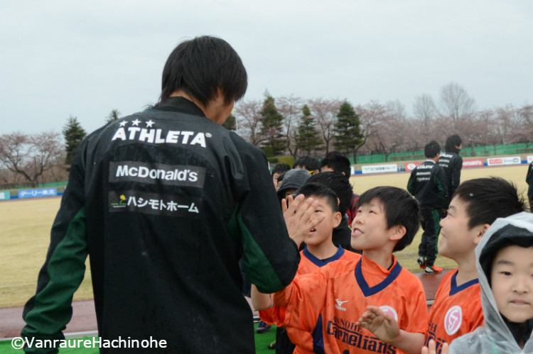 試合前は勝利の願いを込めて「選手とハイタッチ!」