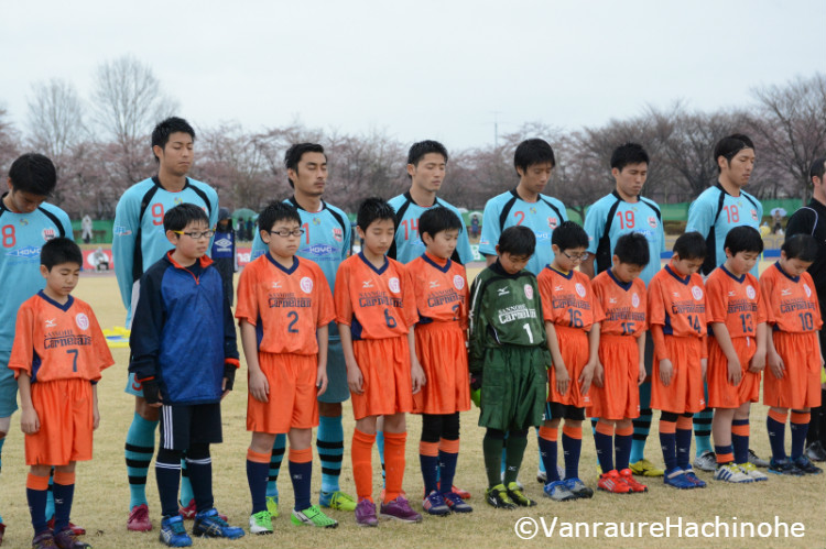 試合前、熊本地震災害の犠牲者へ黙祷を捧げました。