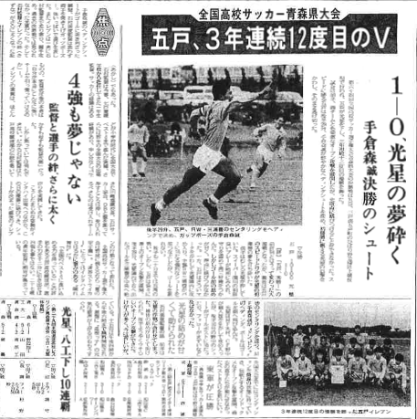 しかし1960年~1996年の長年の間、五戸高校、八戸学院光星高校が青森県の高校サッカーを牽引し、今も両校は青森山田高校を脅かす存在であります。