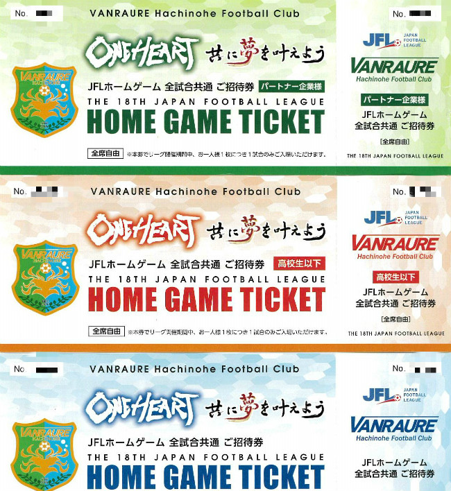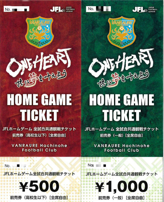 ・各コンビニエンスストアにて販売中の「ヴァンラーレ八戸JFLホームゲーム共通前売券」(一般・高校生以下)