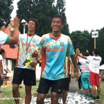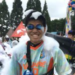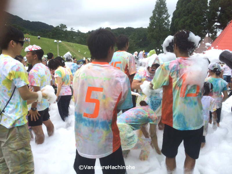 約2kmのコースでは南部町のフルーツを食べたり、カラーウォーターを浴びながら