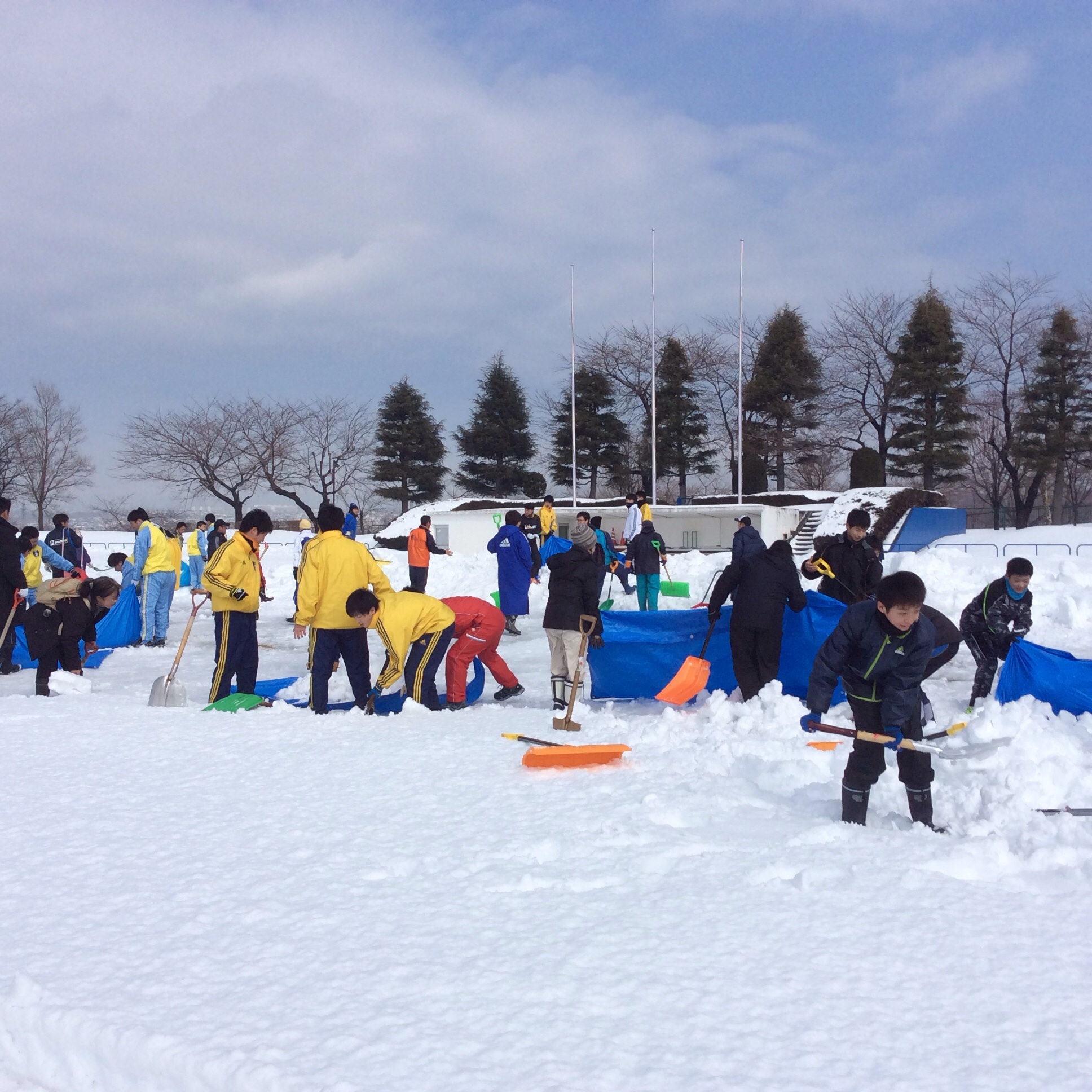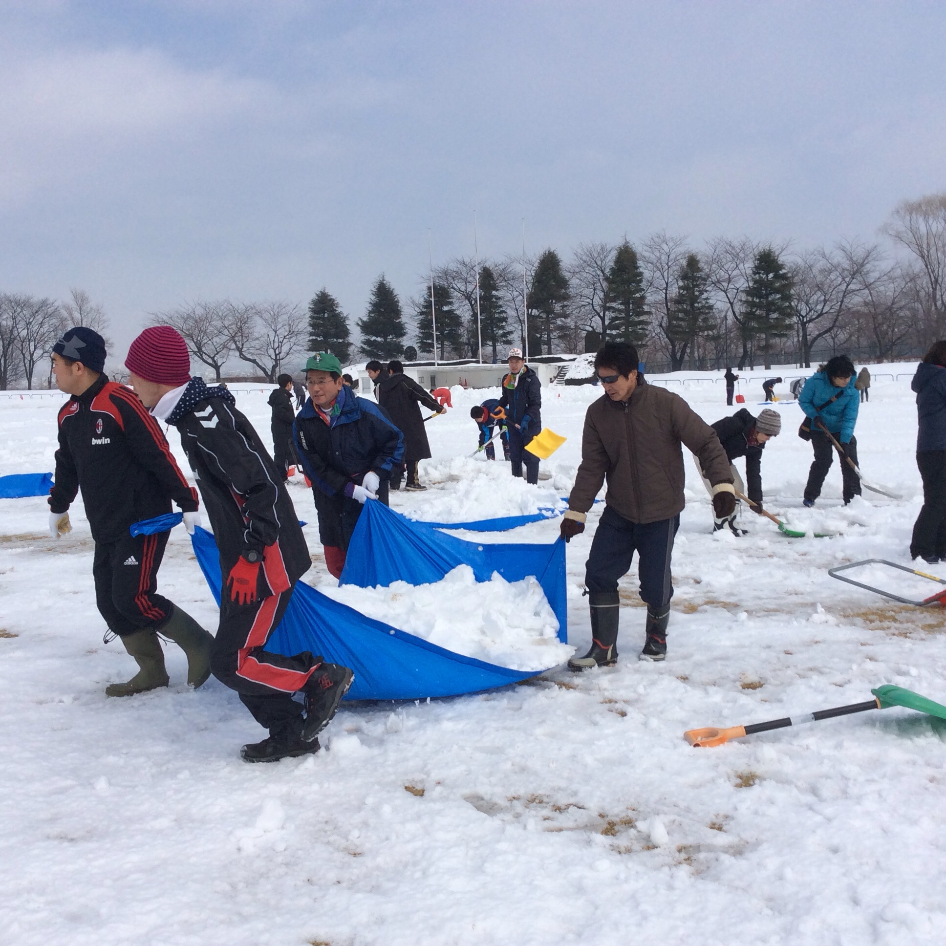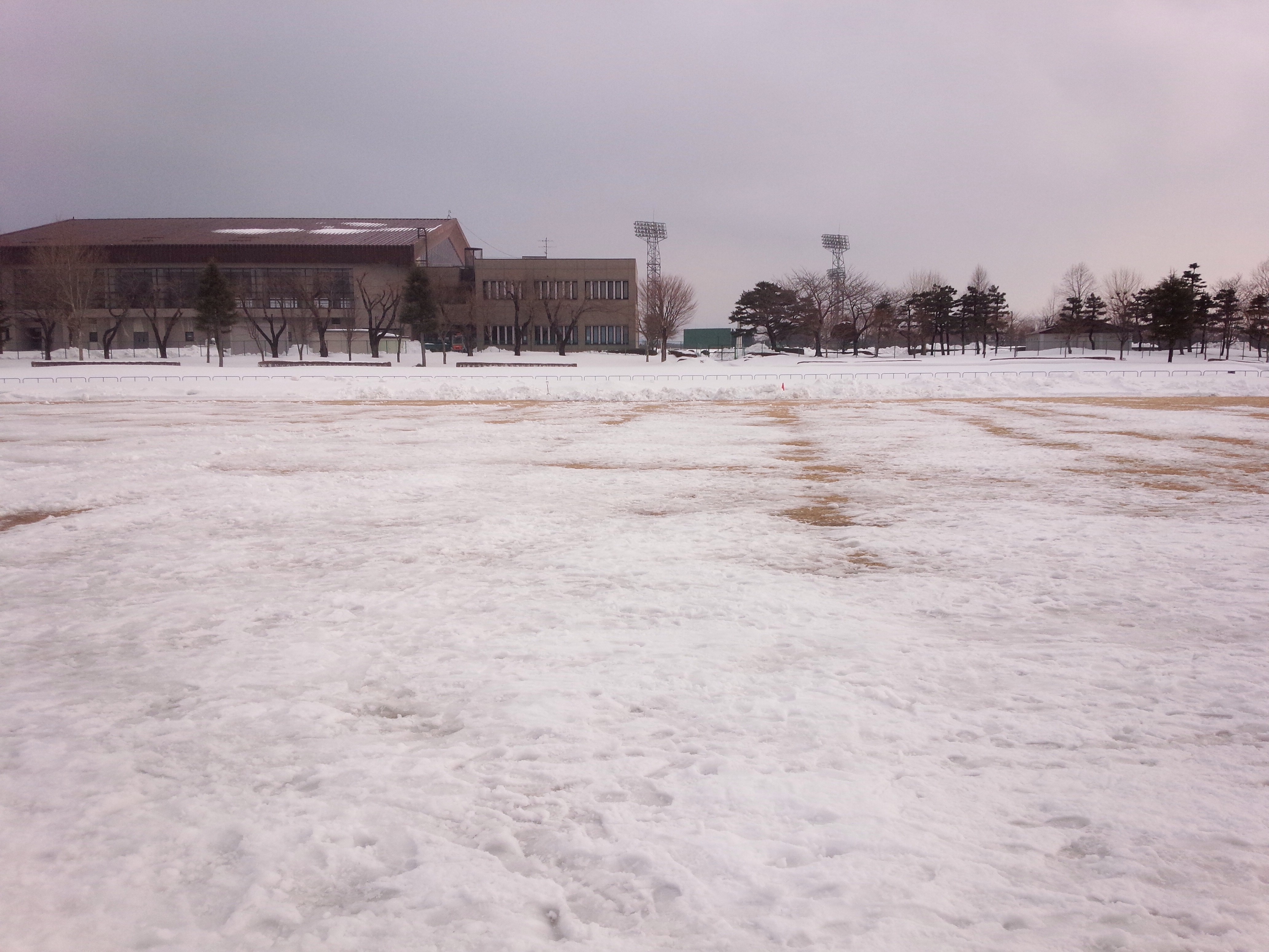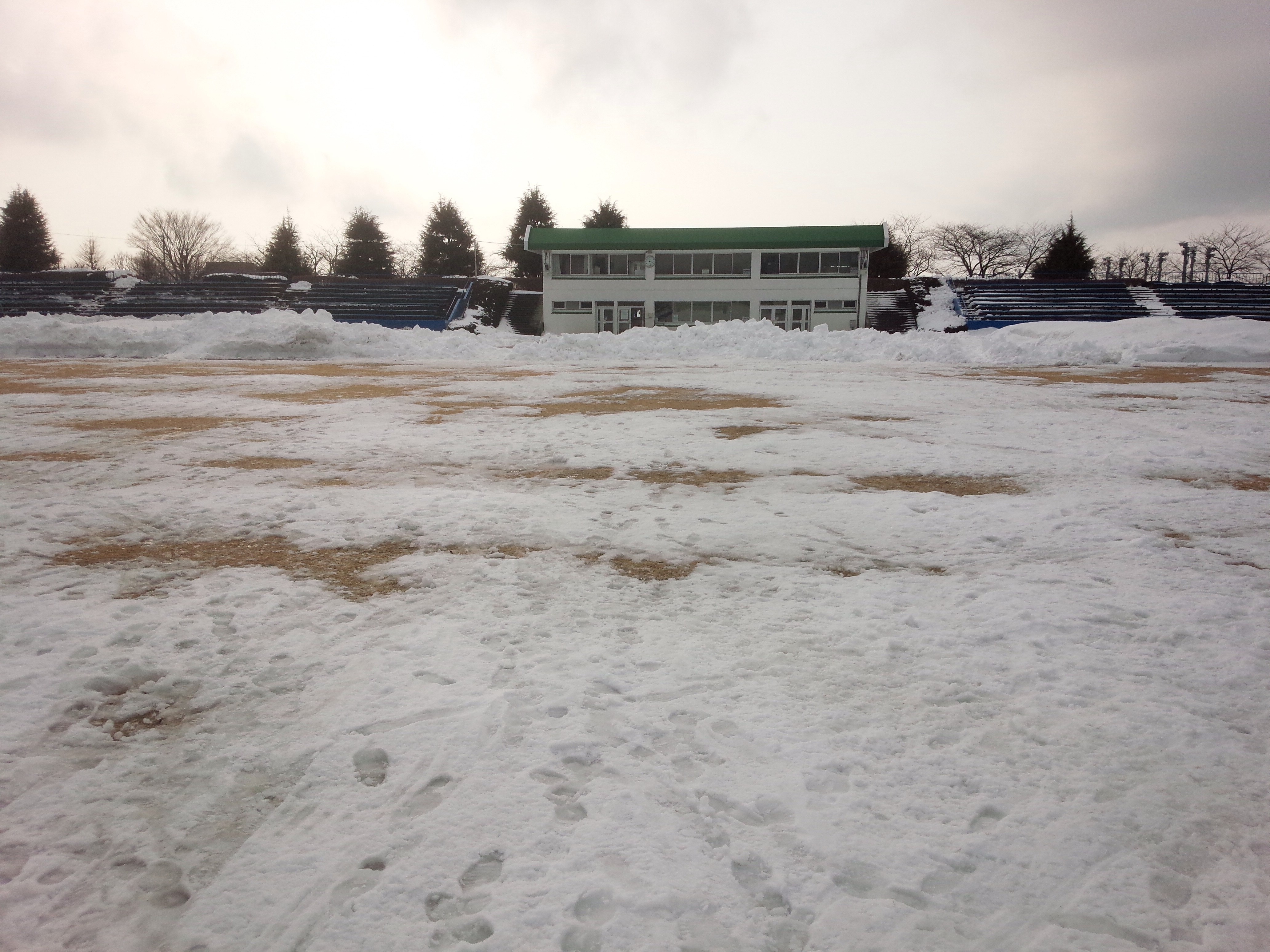 先週の降雪で、再び雪に埋れてしまったピッチも、たくさんの方々のご協力により芝が覗いて見えるまでになりました。あとは、21日(金・祝)まで気温が上がり、雪が完全に溶けるのを願うのみですね!