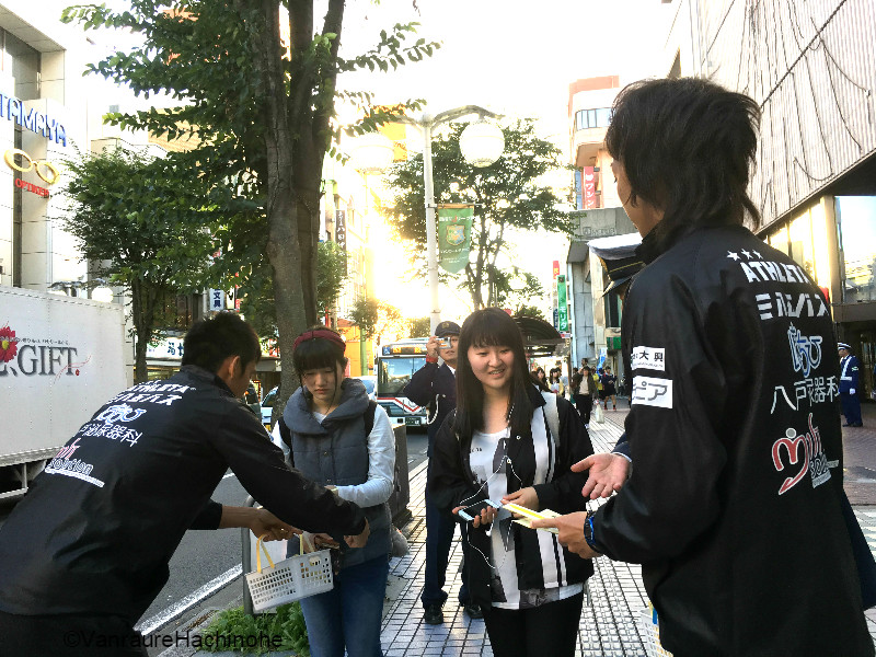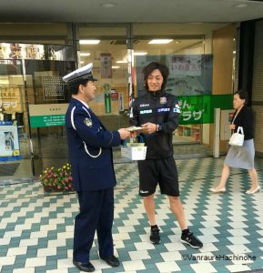 「歩行者交通マナーアップ街頭広報活動」に♯3成田選手・♯20山﨑選手が参加してきました。