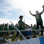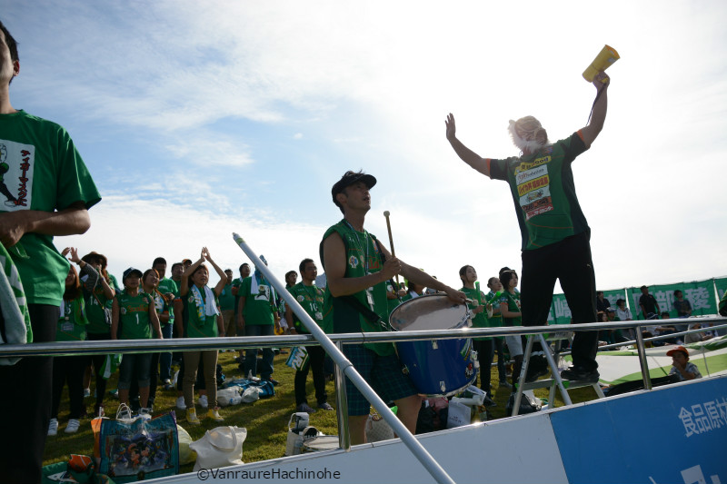 このタブロイドを使い、会場内全員で「八戸」のコレオグラフィ(人文字)を実施。