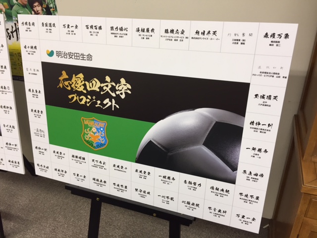 応援四文字応援プロジェクトの協賛いただいた企業名と四文字熟語が掲載された