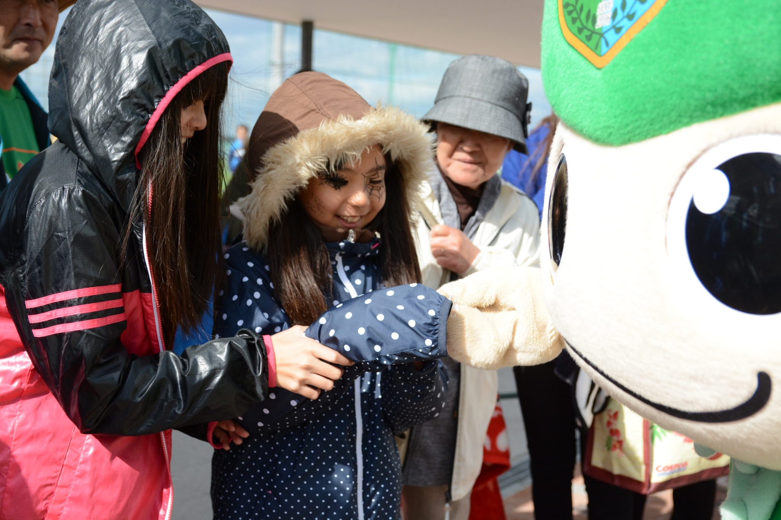 沖縄にちなみ、ヴァン太くんが『ちんすこう』を配ってましたよ!