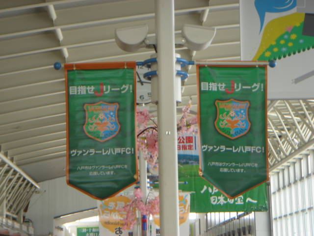今シーズンも、八戸市中心街・八戸駅へ、八戸市よりヴァンラーレ八戸の応援フラッグ掲出していただきました。