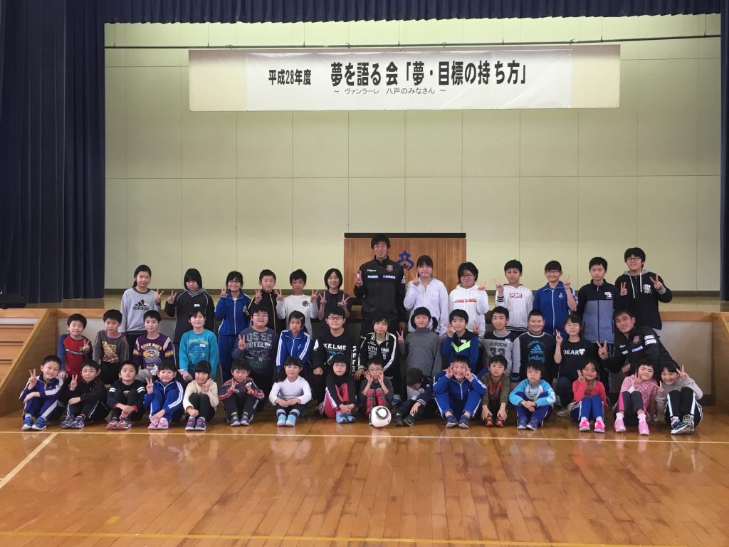 11月30日(水)十和田市立高清水小学校で#25市川大祐選手による講話を行いました。その様子を紹介します。