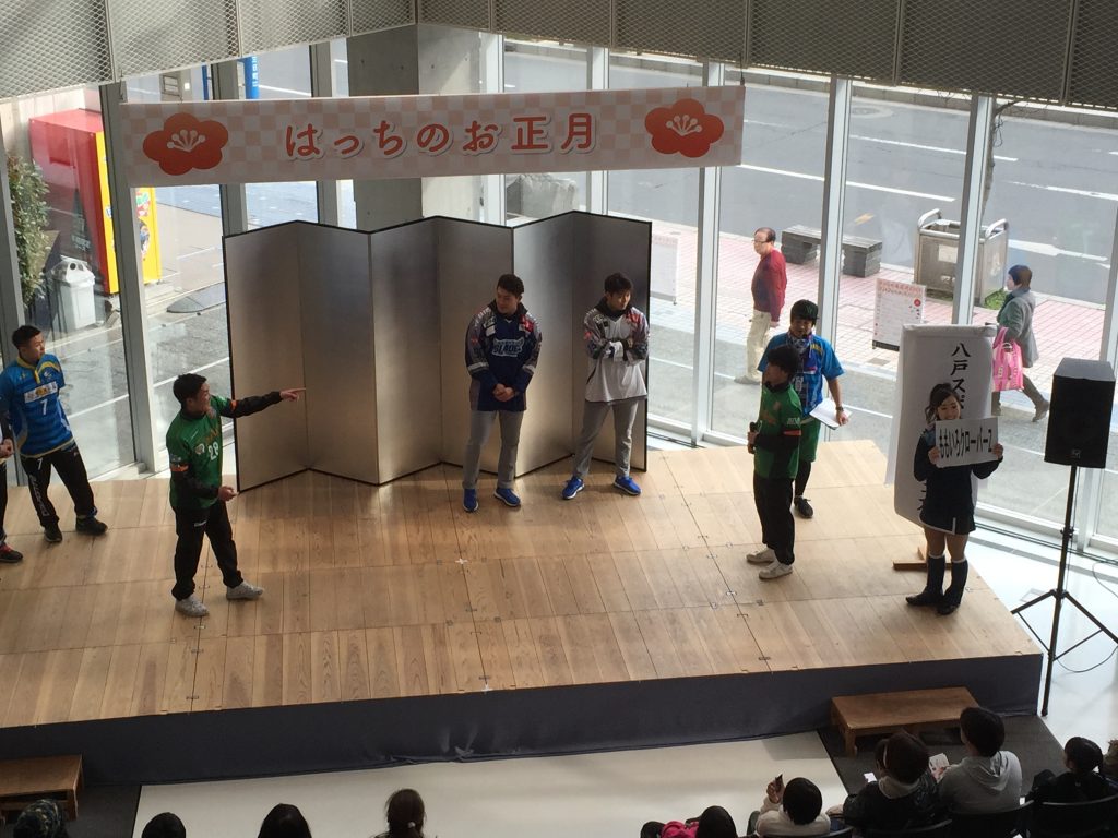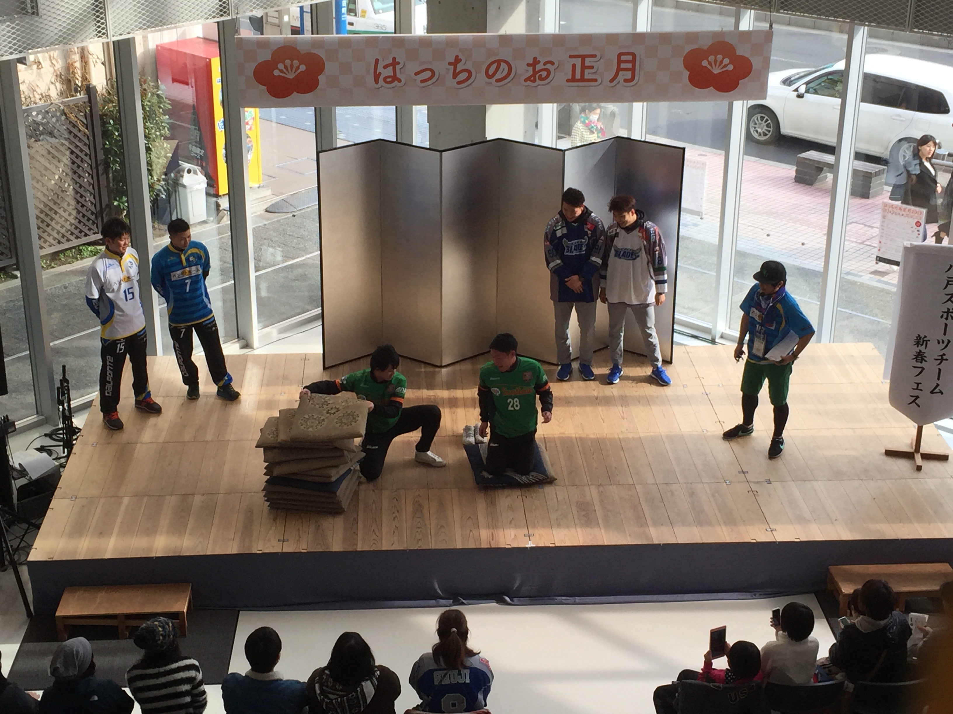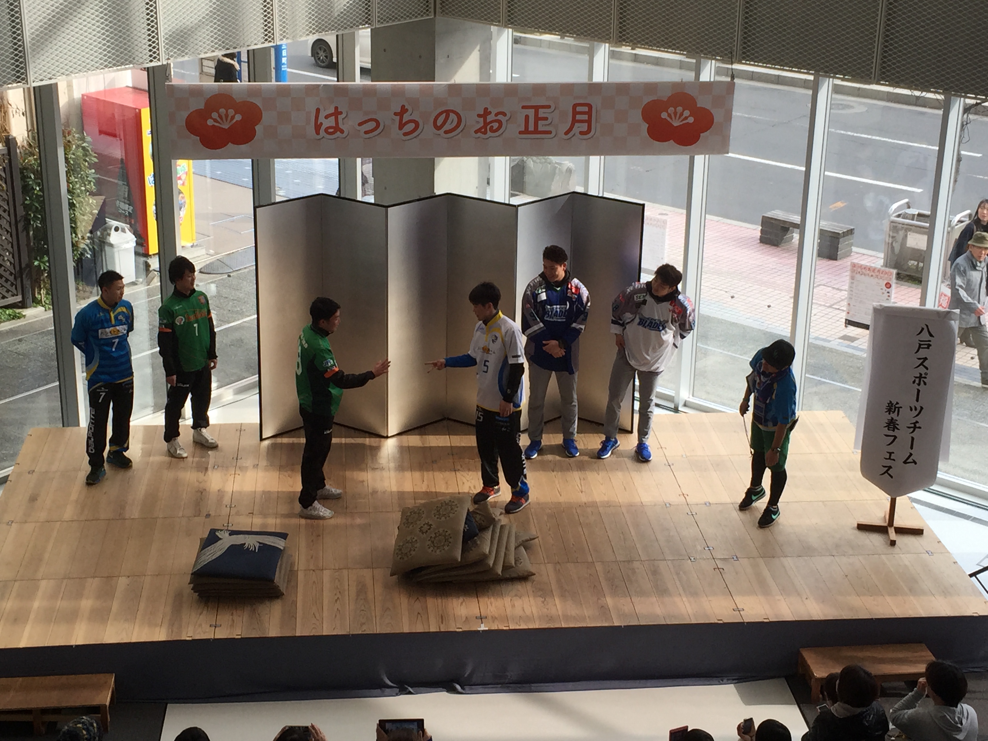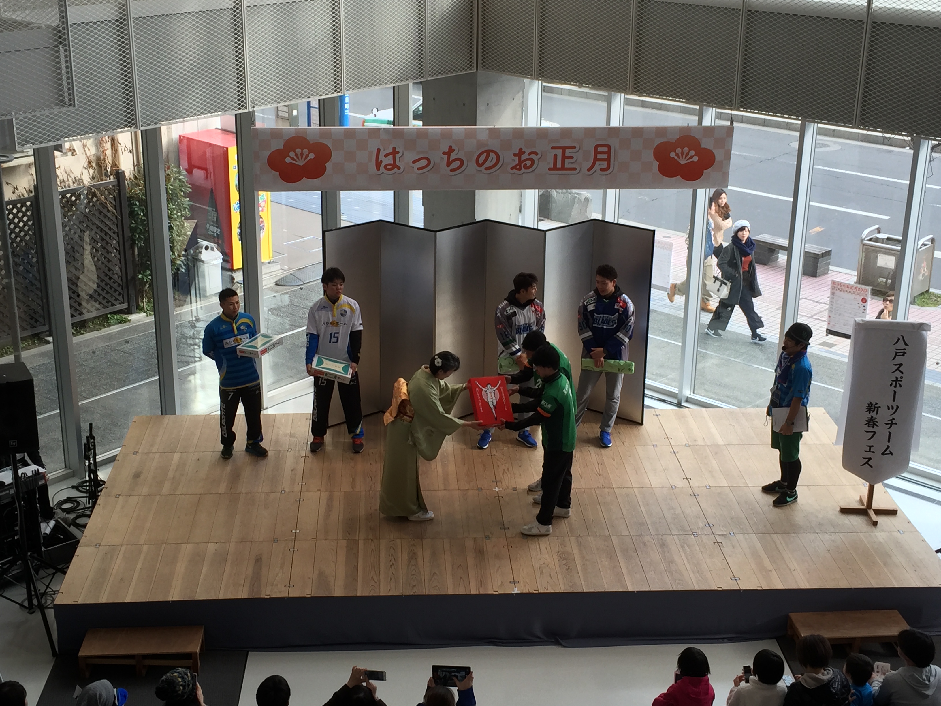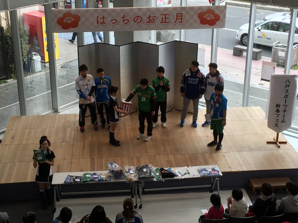 2017年1月2日(月)にはっちで行われた「2017八戸スポーツチーム新春フェス」に李澤忍治選手、舛沢樹選手、ヴァン太くんが参加してきました。