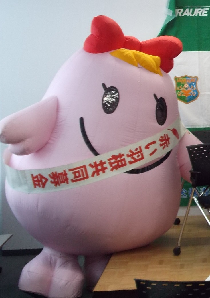 贈呈式には青森県共同募金会 井畑明男会長をはじめ、赤い羽根共同募金シンボルキャラクターの愛ちゃんも駆けつけてくれました。