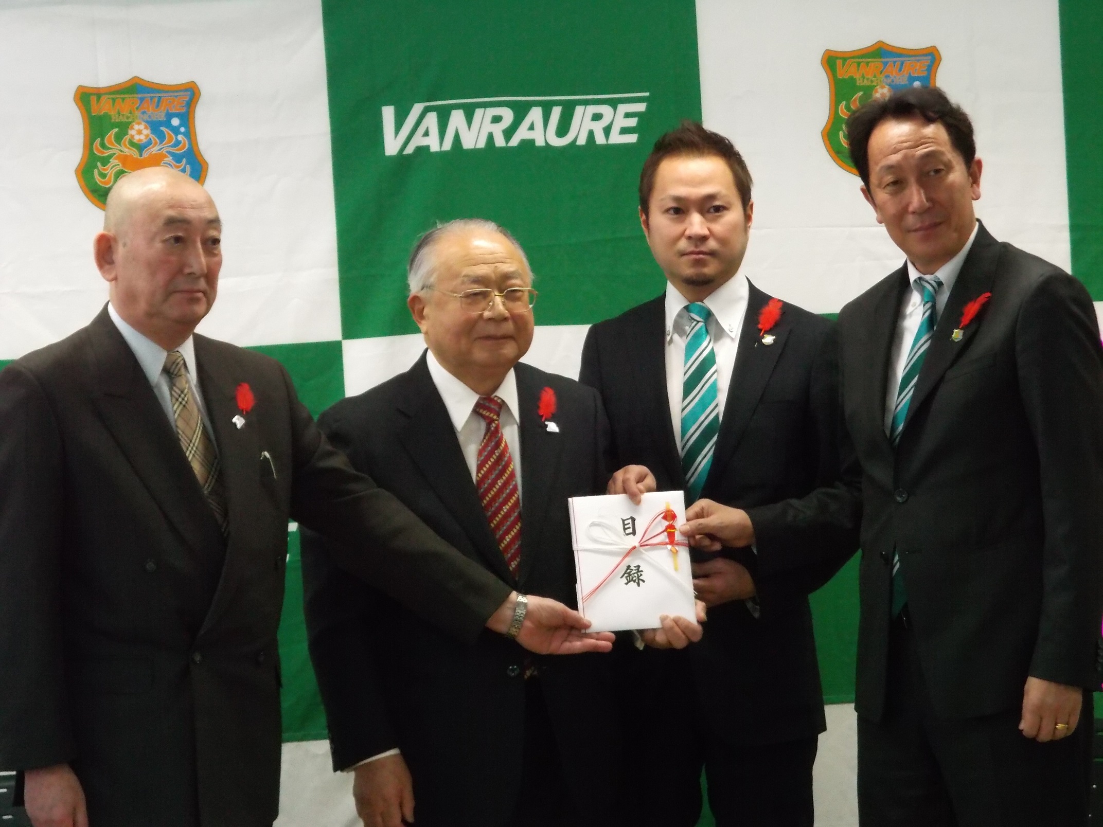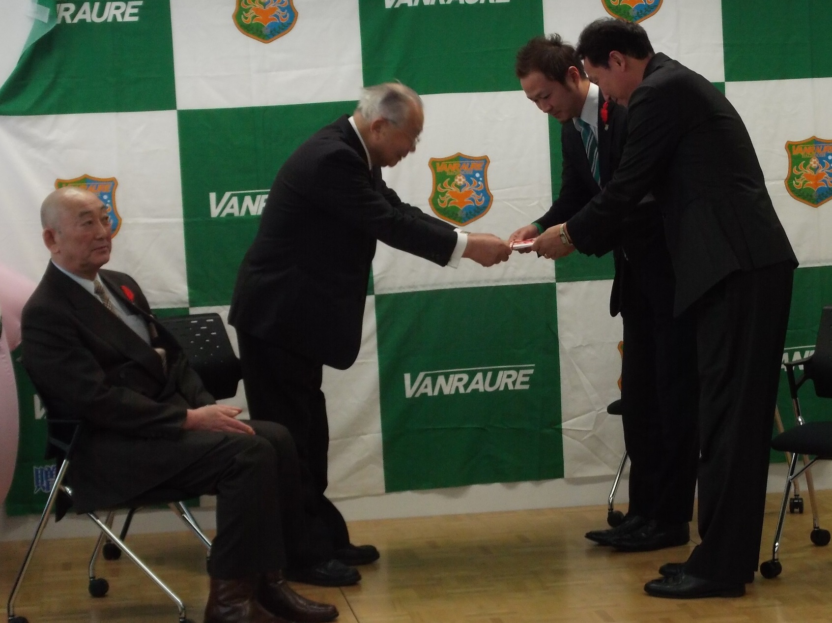 1月16日(月)ダイハツスタジアムにて、ヴァンラーレ八戸×赤い羽根共同募金共同企画勝利募金贈呈式が行われました。1勝につき2,000円の寄付ということで、昨シーズンの勝利数…