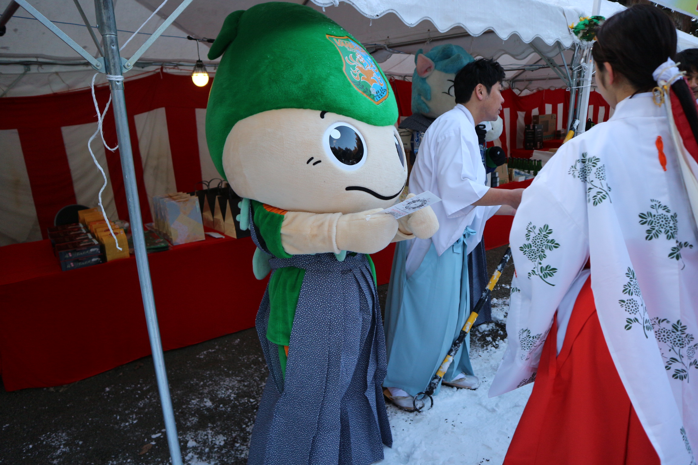 ヴァン太くんは神事の後に行われる豆まきに備え、