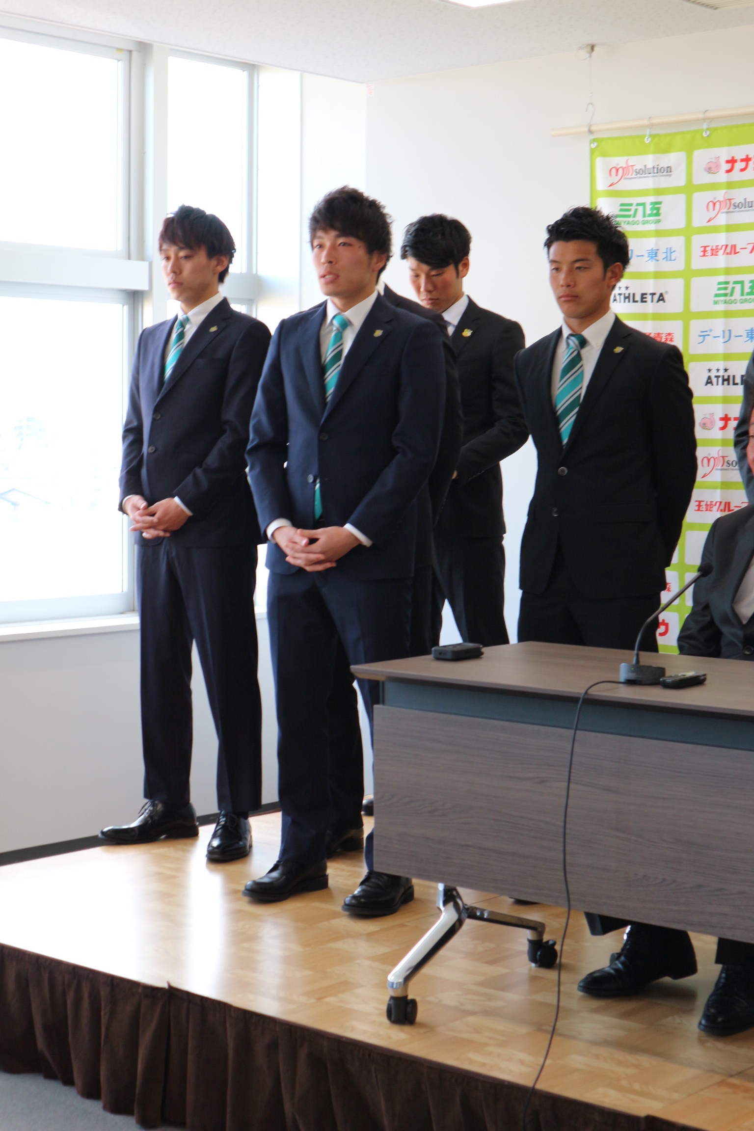 続いて2017シーズンのヴァンラーレ八戸公式ユニフォーム発表とスポンサー記者会見が行われました。