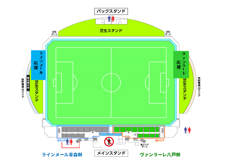 ※ヴァンラーレ八戸ベンチは南エリア側になります。