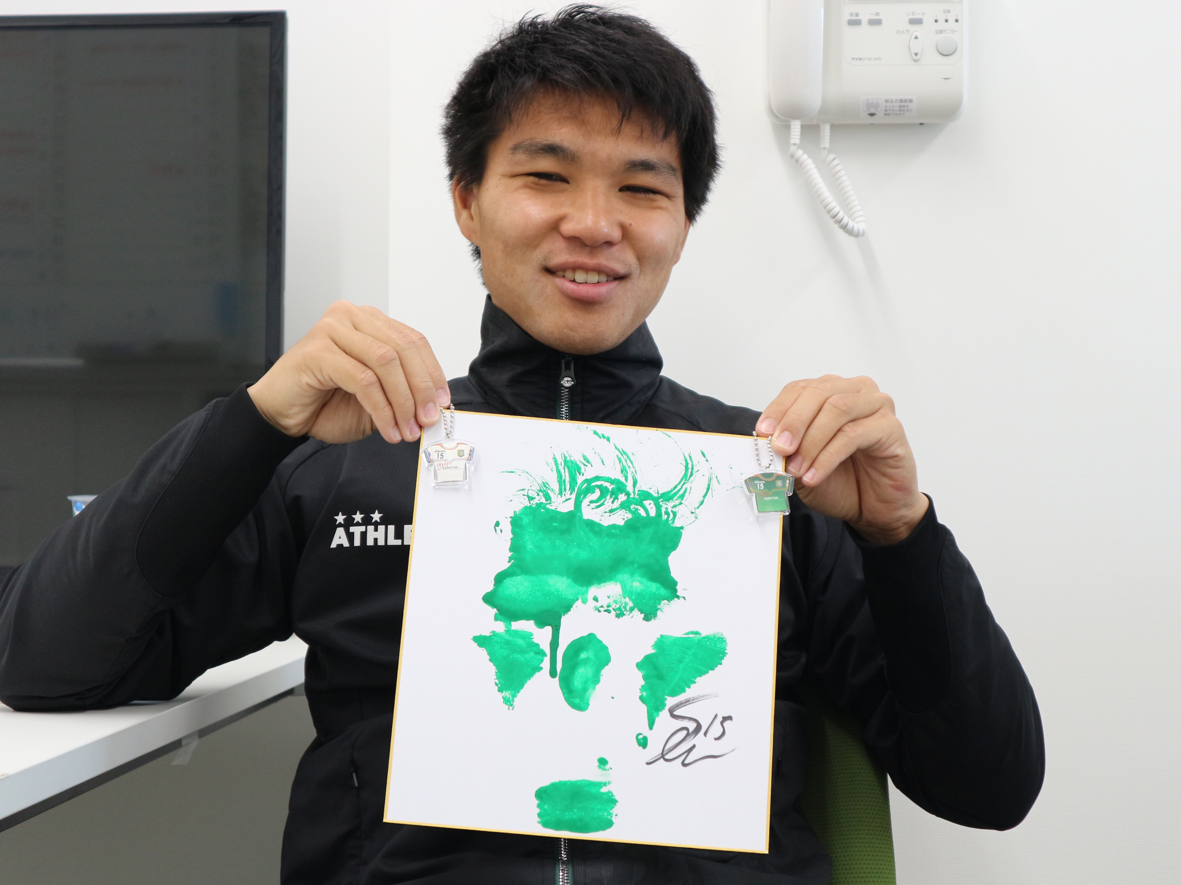▲持ち手部分はGKユニフォーム(HOME赤/AWAY黄)をイメージしています。