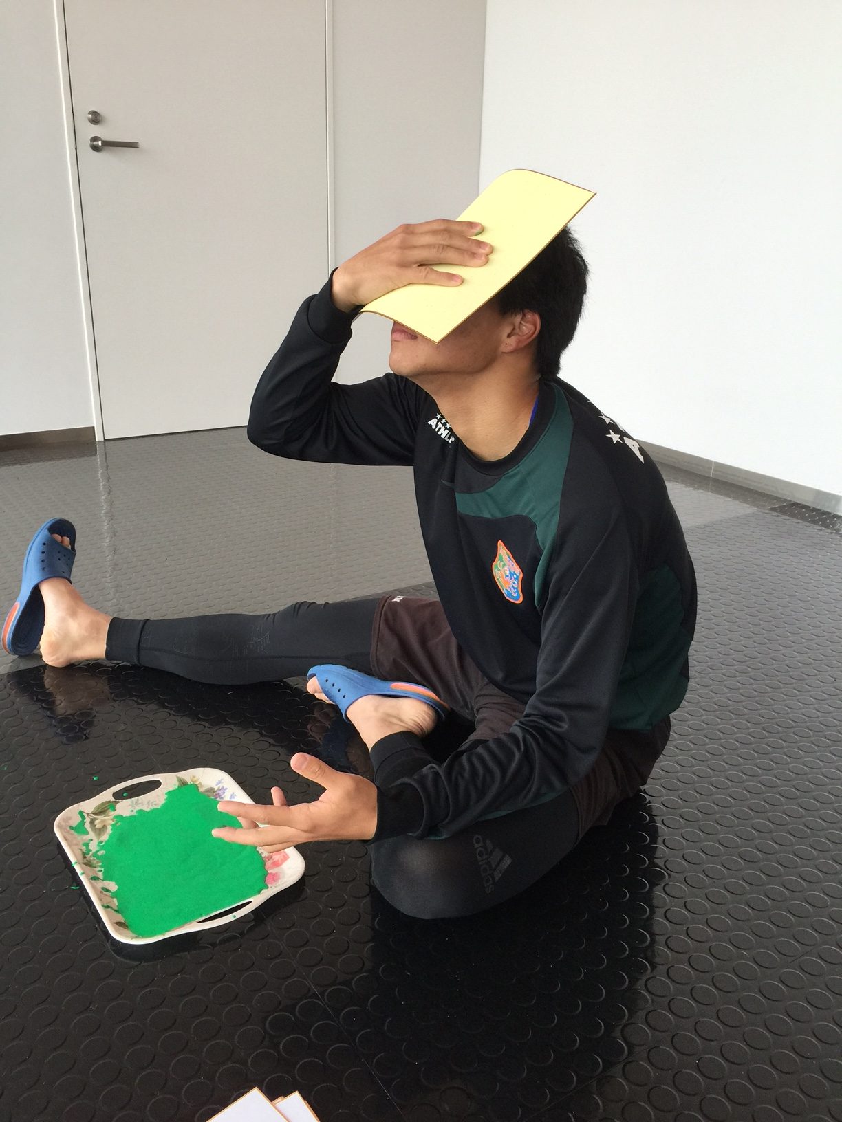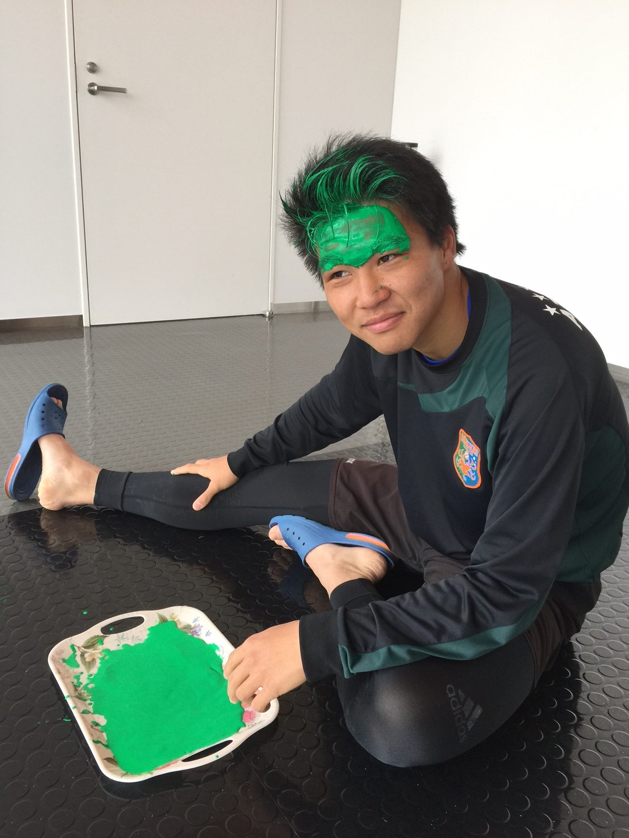 ▲持ち手部分はGKユニフォーム(HOME赤/AWAY黄)をイメージしています。