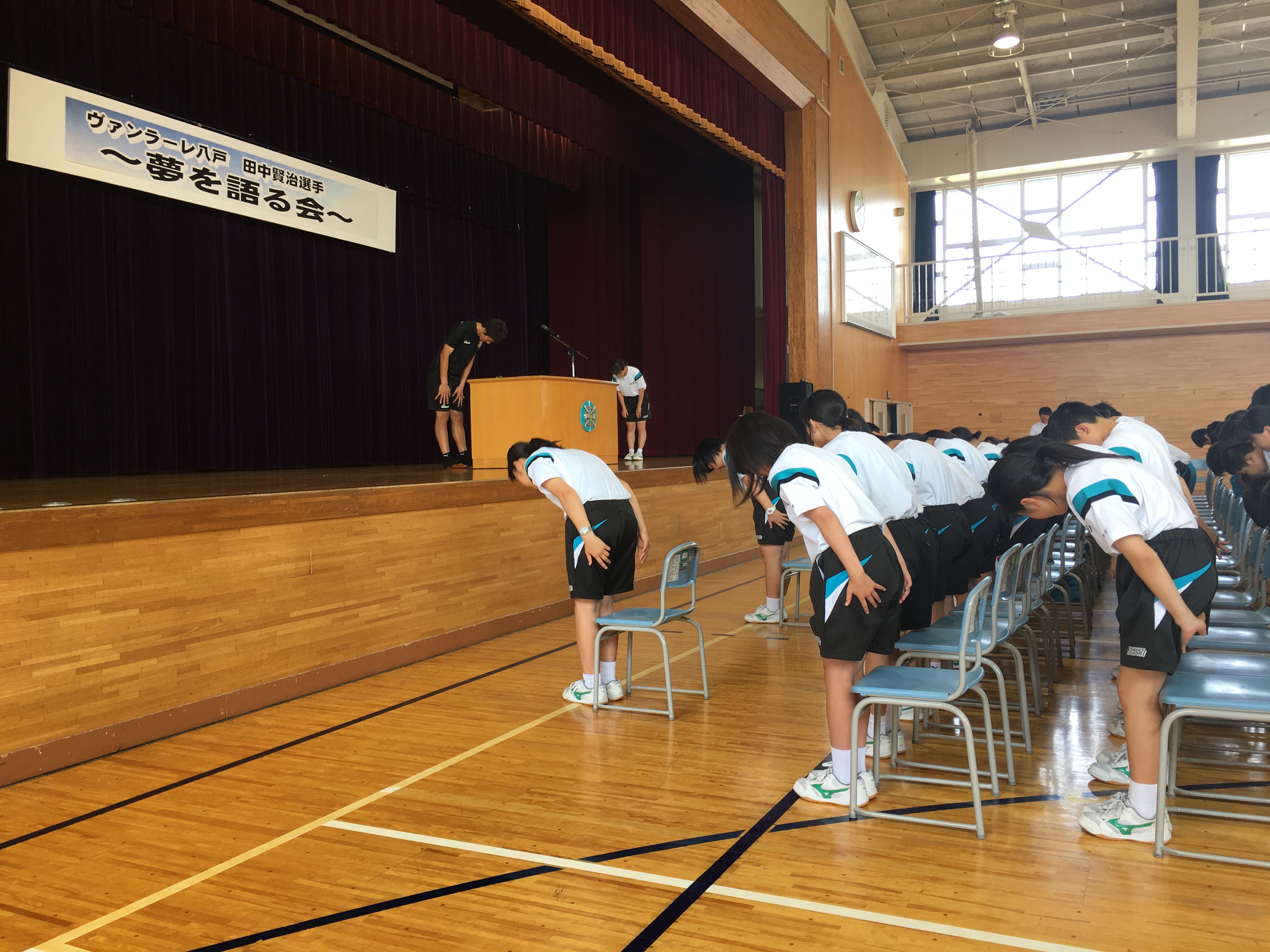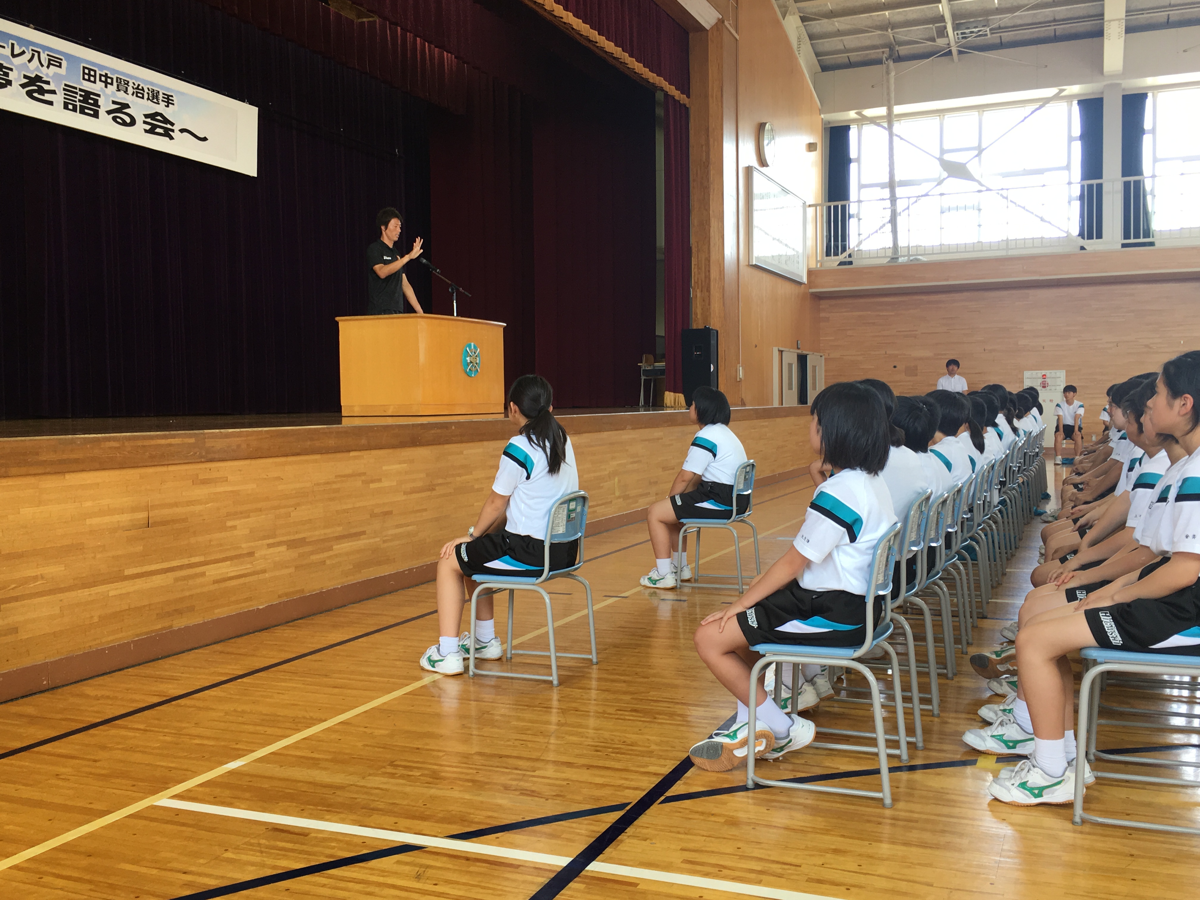八戸市立東中学校において#33田中賢治選手の講話を行いました。