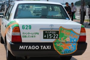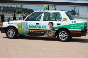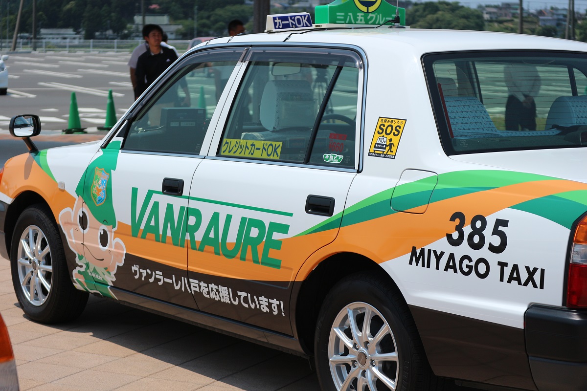 「ヴァンラーレ八戸応援ラッピングタクシー」のお披露目が