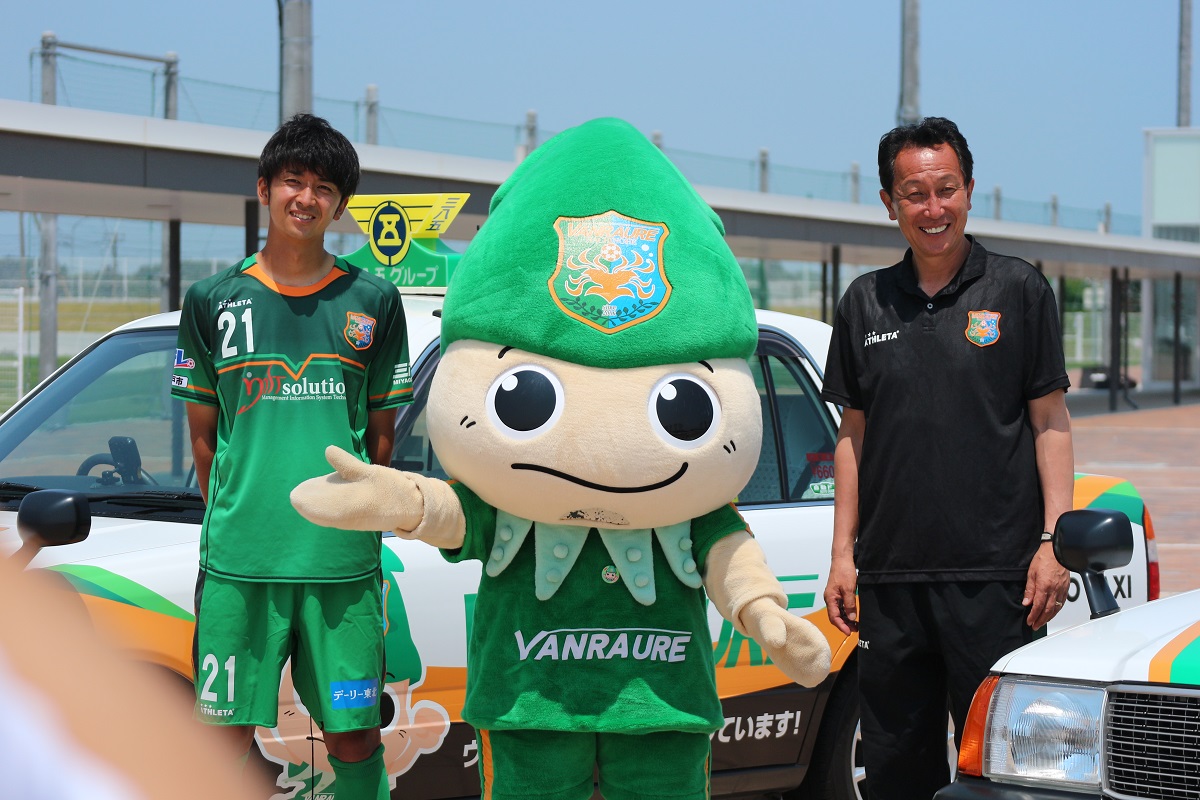 ダイハツスタジアムにて行われ、柱谷監督・#21須藤選手・ヴァン太くんが出席しました。