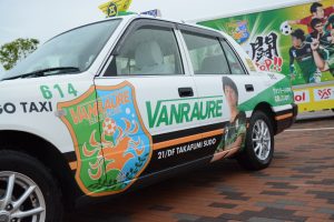 先日デビューしたアドトラックとラッピングタクシーも登場!