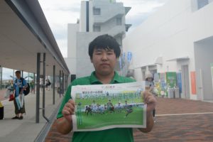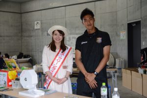 今回はスタジアムDJを務めるBeFM小泉亮さんもボランティアスタッフの一員として