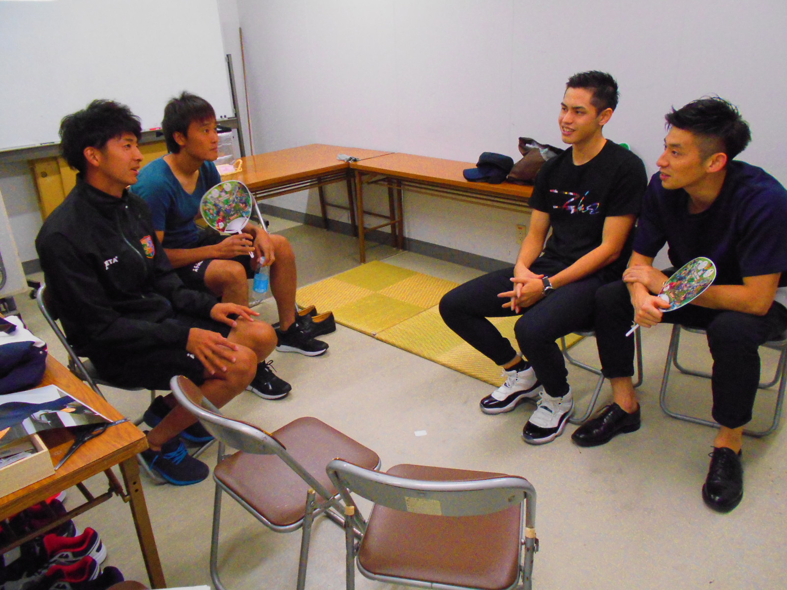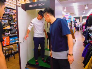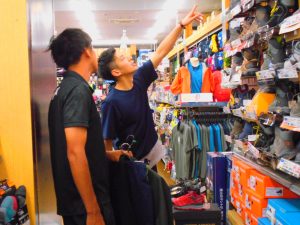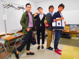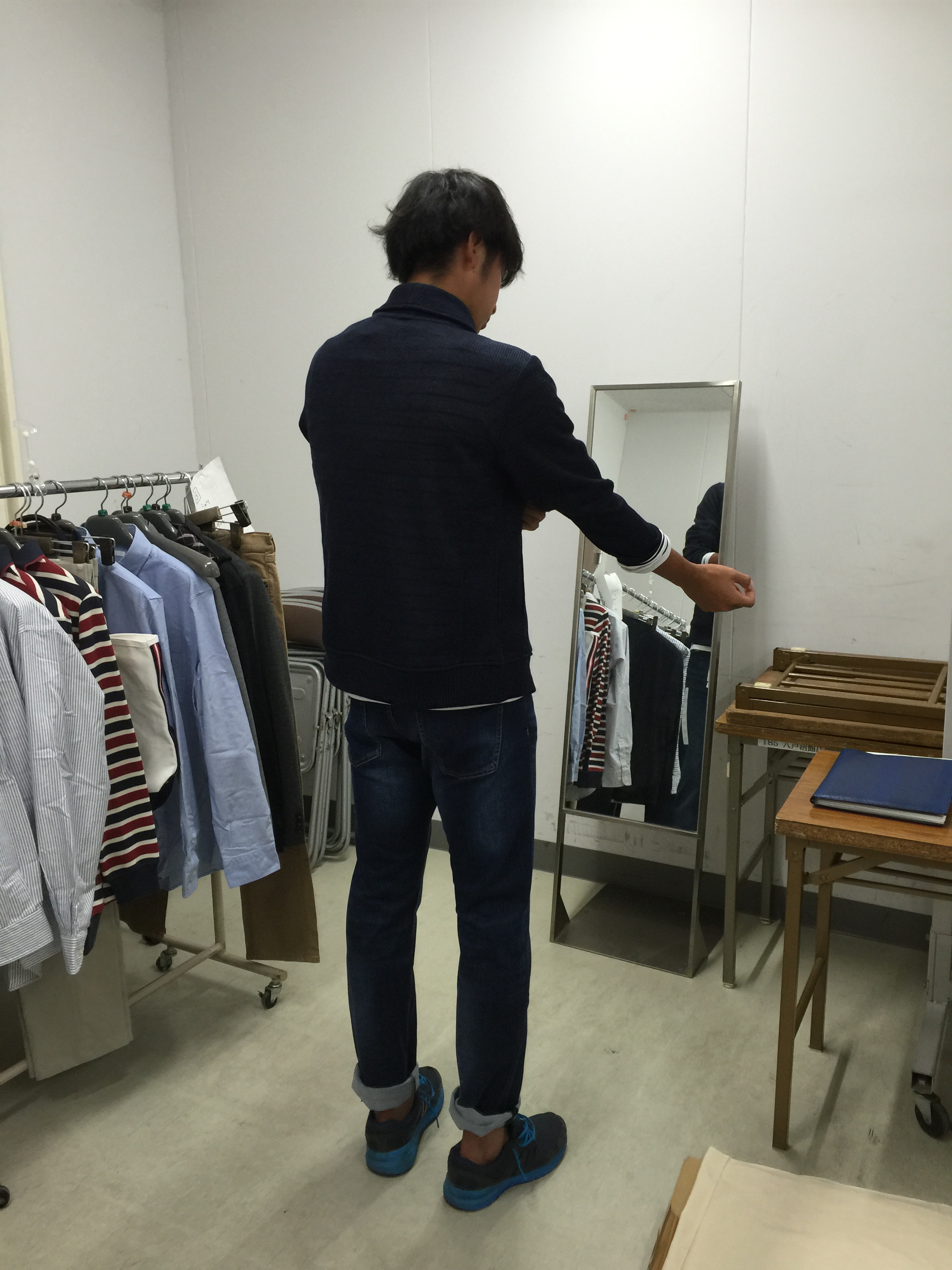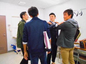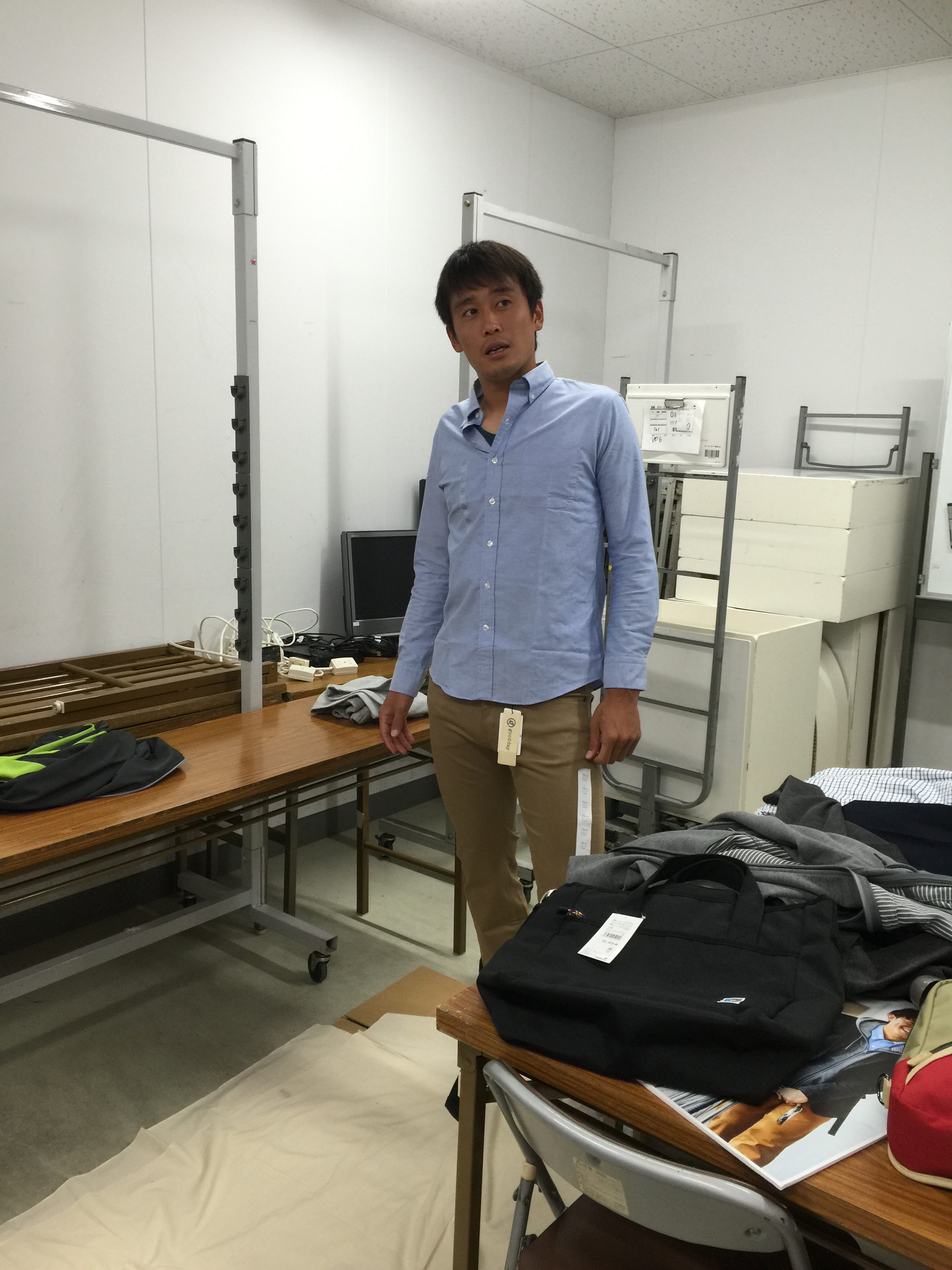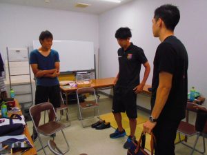 下山キャプテンに似合う服を選んでいます。成田選手も須藤選手にアドバイス。