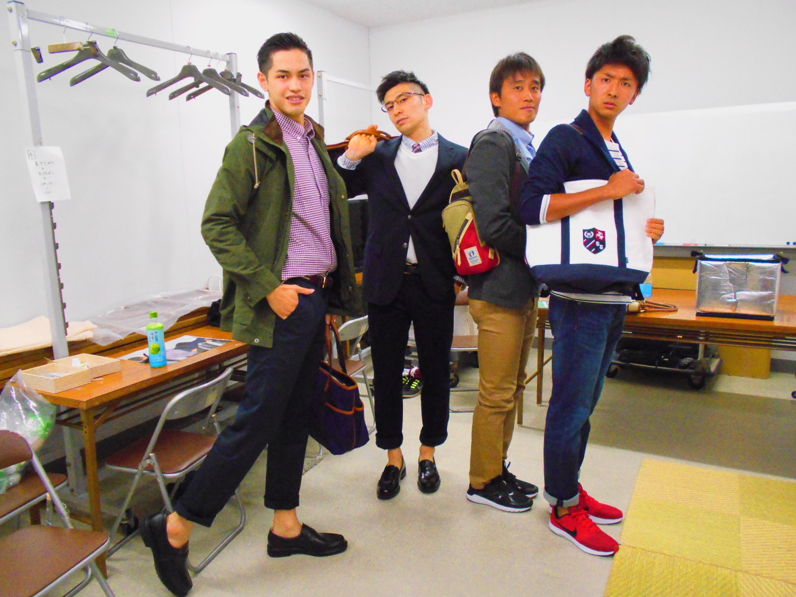 足元までビシッと決めた四人のコーディネートです。