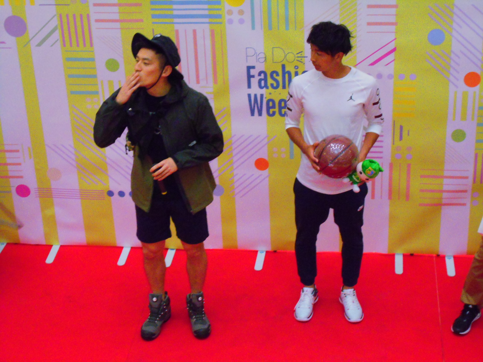 初めてのファッションショーに気合十分!(左)下山大地キャプテンと、