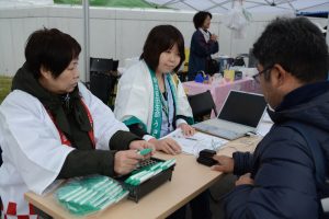 マッチスポンサーは明治安田生命様でした。特設ブースでは血管年齢を測定してくれました。