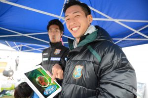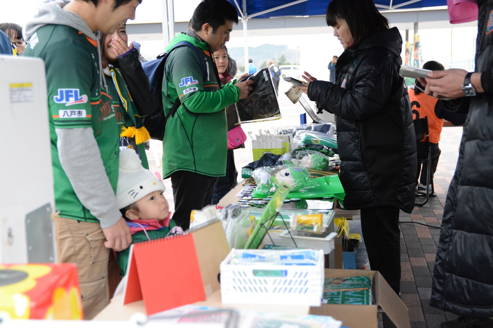 グッズ売り場では選手もお手伝い。1,000円くじは大好評です!